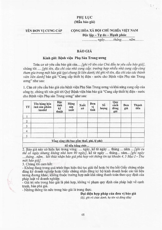 Kính gửi: Các hãng sản xuất, nhà cung cấp tại Việt Nam