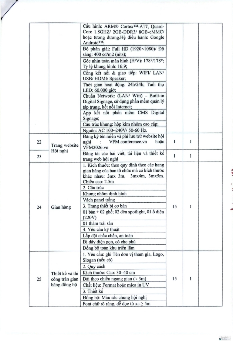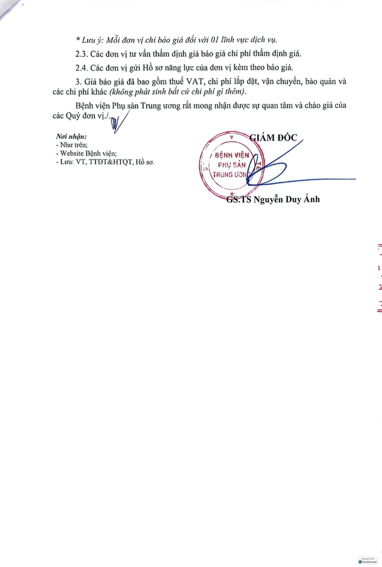 Kính gửi: Các hãng sản xuất, nhà cung cấp tại Việt Nam