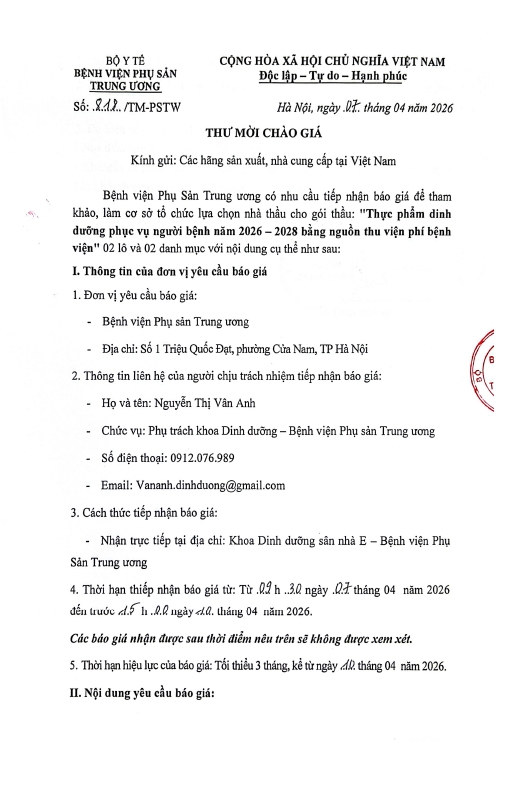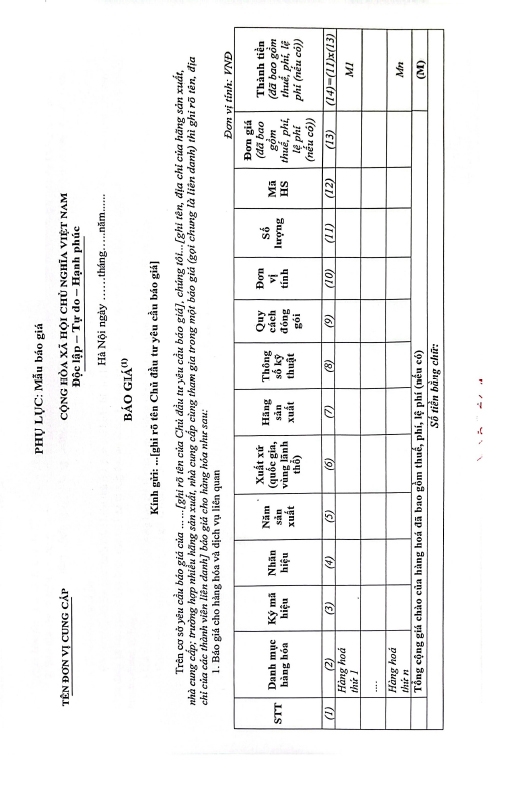 Kính gửi: Các hãng sản xuất, nhà cung cấp tại Việt Nam