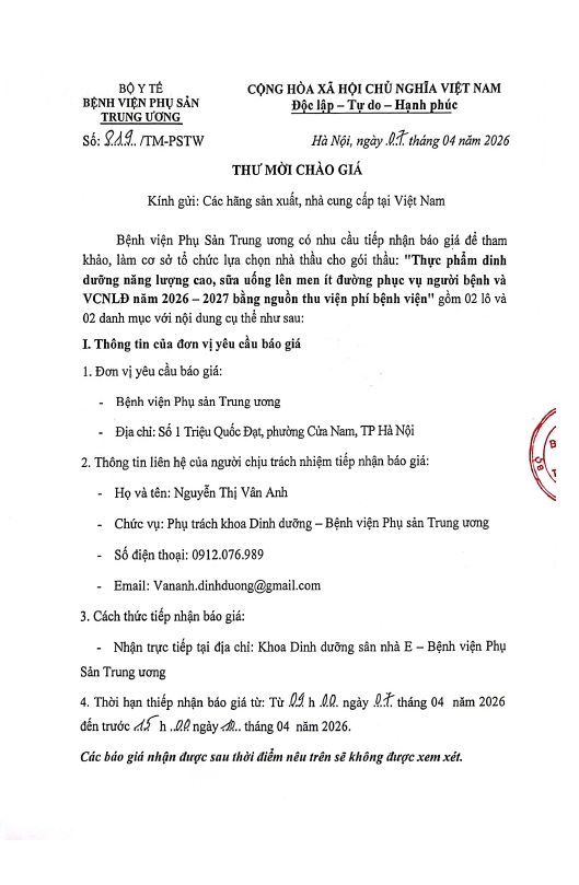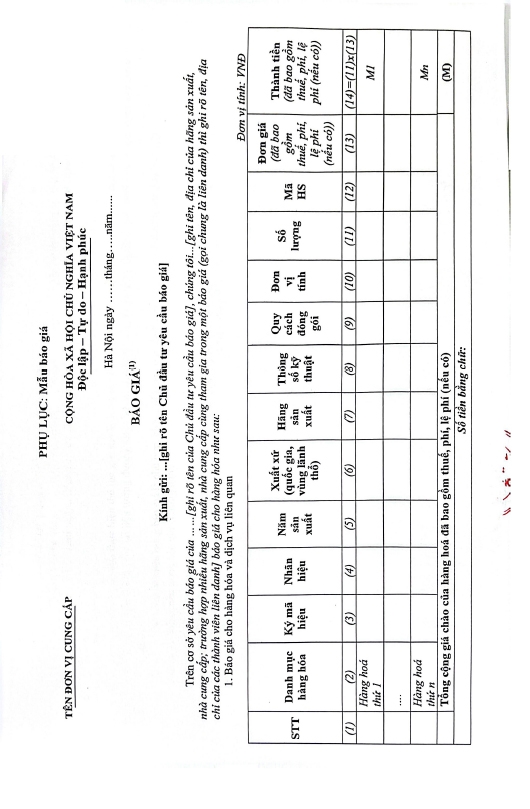 Kính gửi: Các hãng sản xuất, nhà cung cấp tại Việt Nam