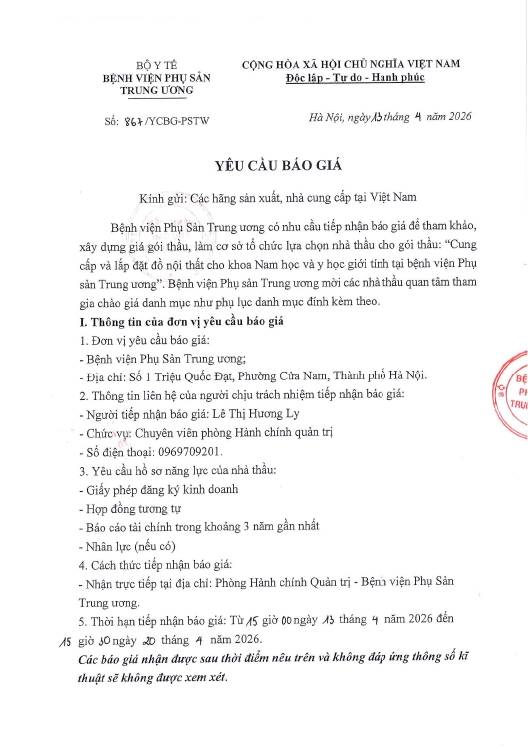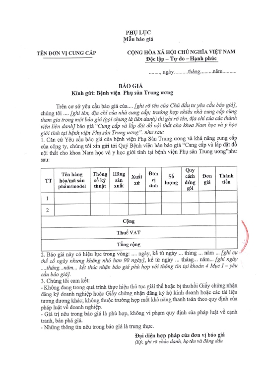 Kính gửi: Các hãng sản xuất, nhà cung cấp tại Việt Nam