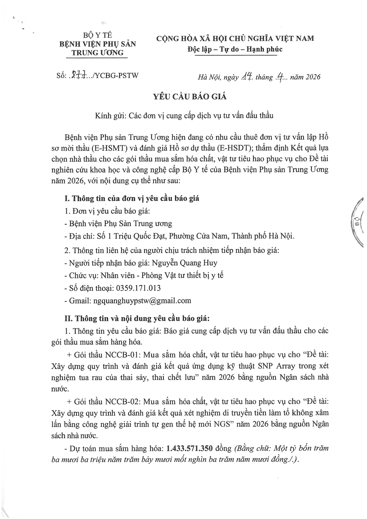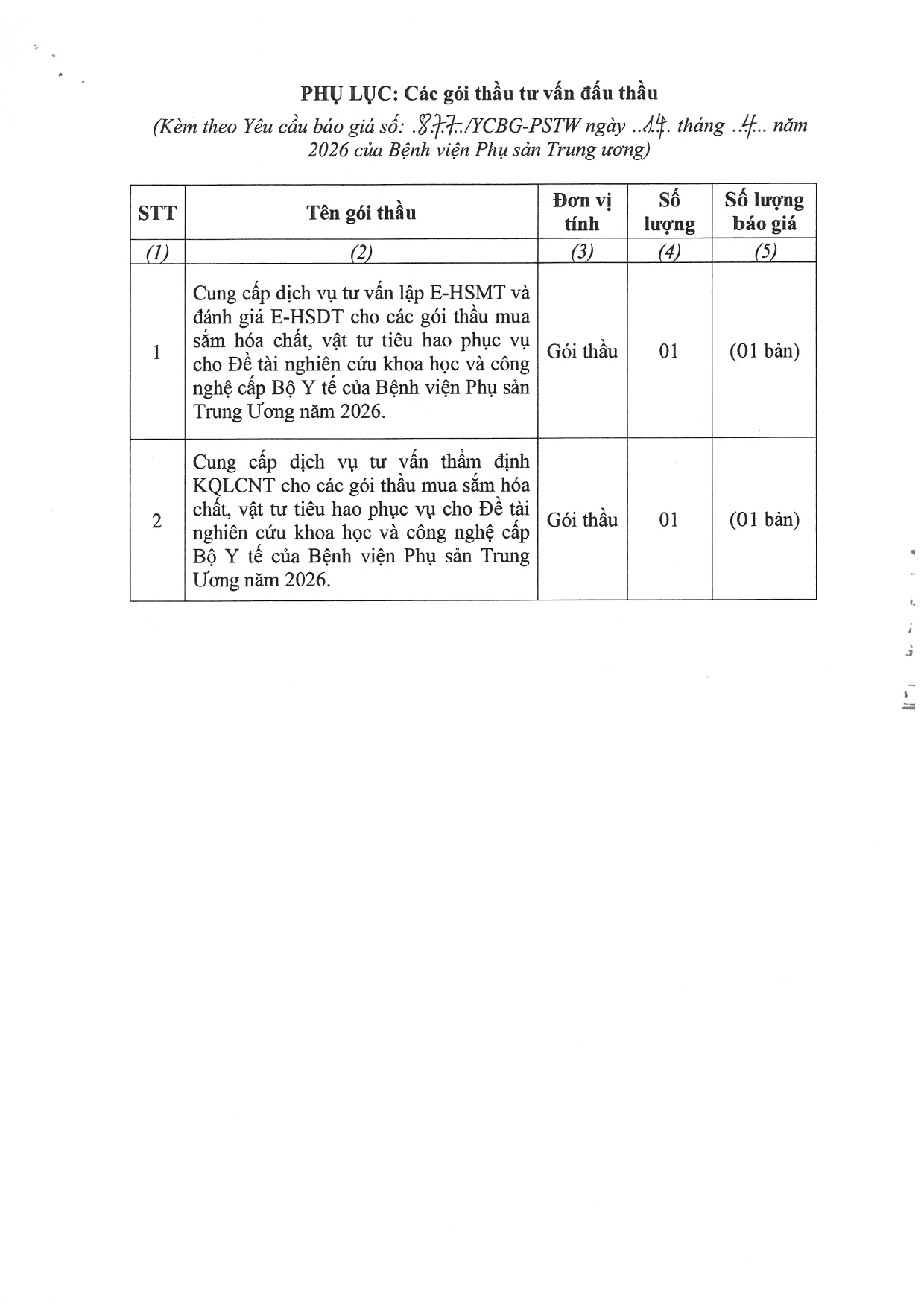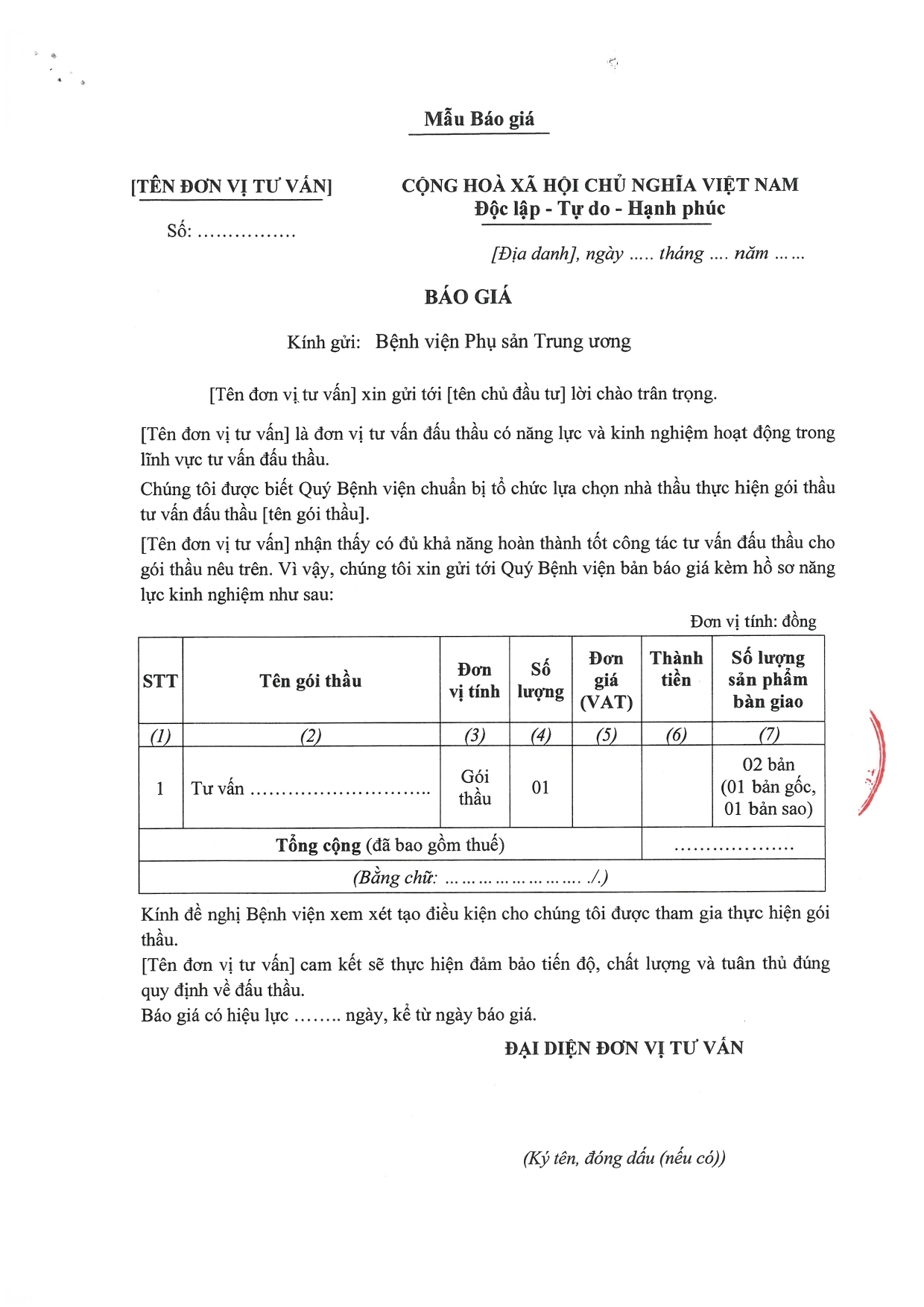 Kính gửi: Các đơn vị cung cấp dịch vụ tư vấn đấu thầu