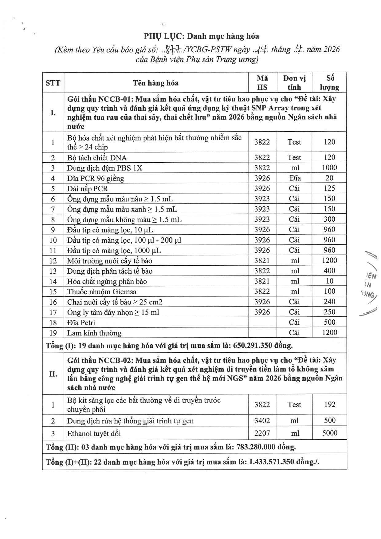 Kính gửi: Các hãng sản xuất, nhà cung cấp tại Việt Nam