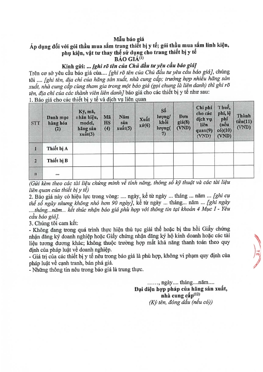 Kính gửi: Các hãng sản xuất, nhà cung cấp tại Việt Nam