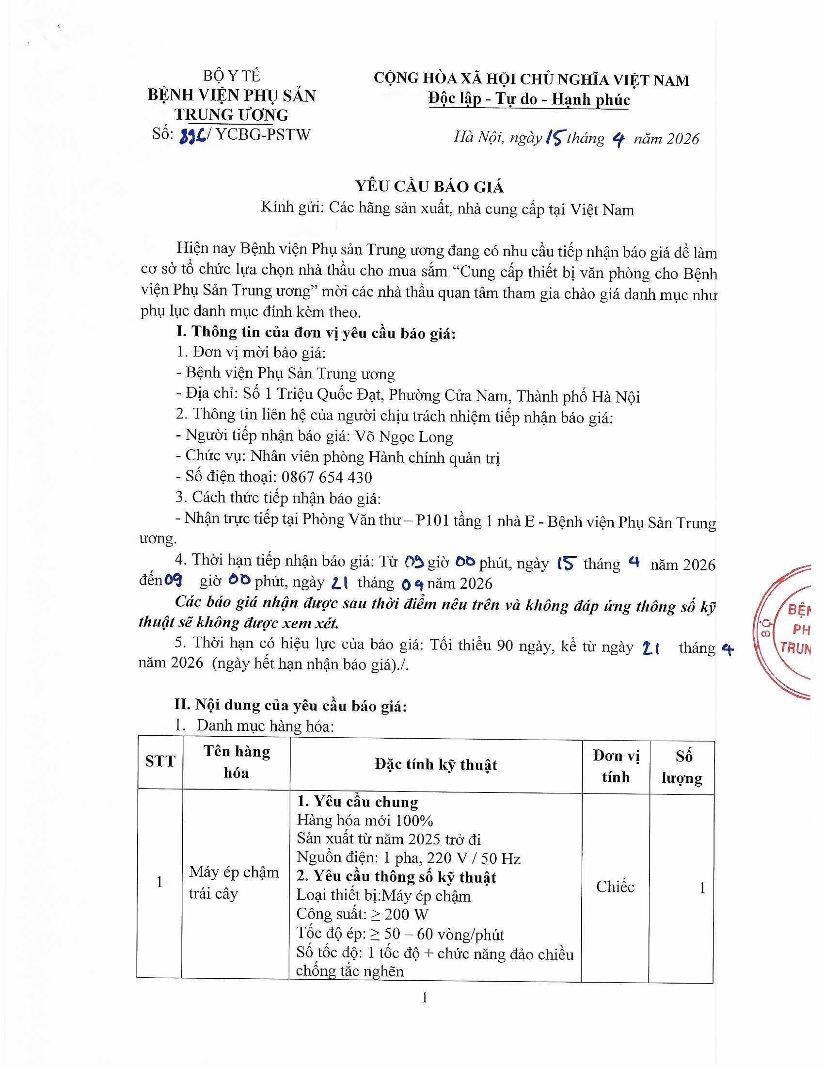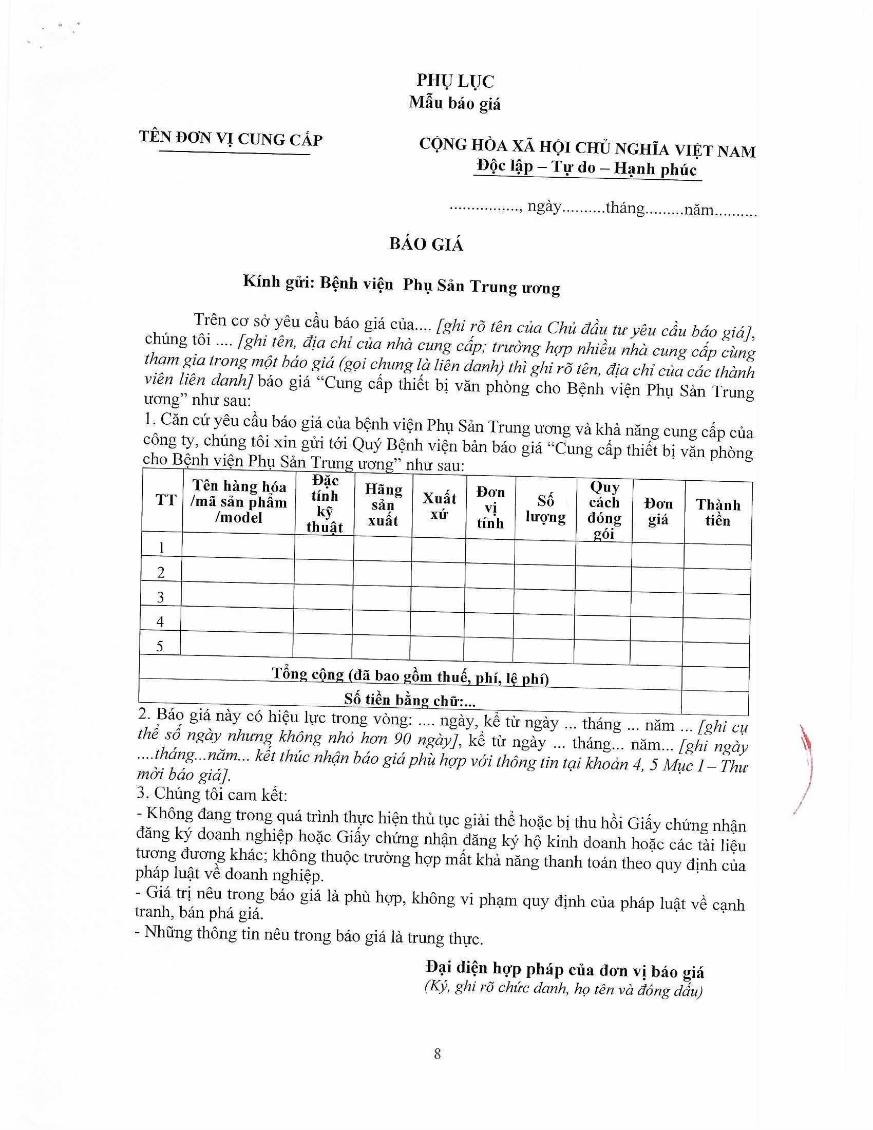 Kính gửi: Các hãng sản xuất, nhà cung cấp tại Việt Nam