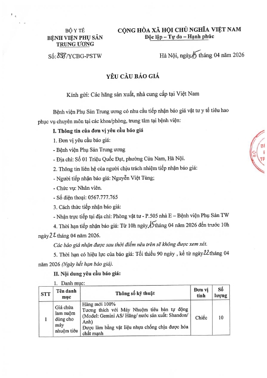 Kính gửi: Các hãng sản xuất, nhà cung cấp tại Việt Nam