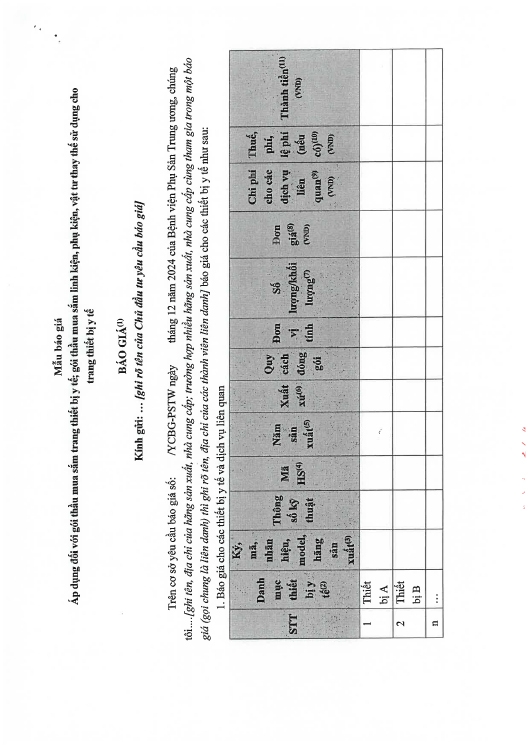Kính gửi: Các hãng sản xuất, nhà cung cấp tại Việt Nam