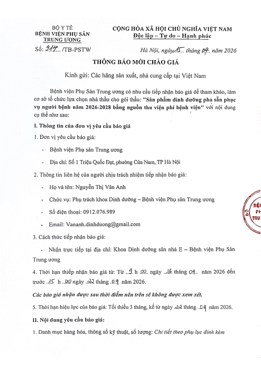 Yêu cầu báo giá số 914/YCBG-PSTW ngày 15/04/2026