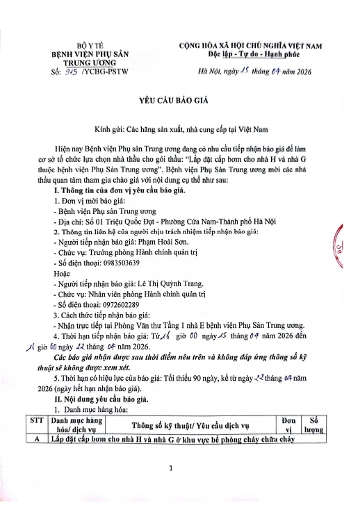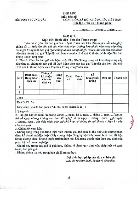 Kính gửi: Các hãng sản xuất, nhà cung cấp tại Việt Nam