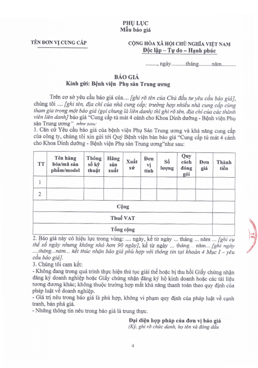 Kính gửi: Các hãng sản xuất, nhà cung cấp tại Việt Nam