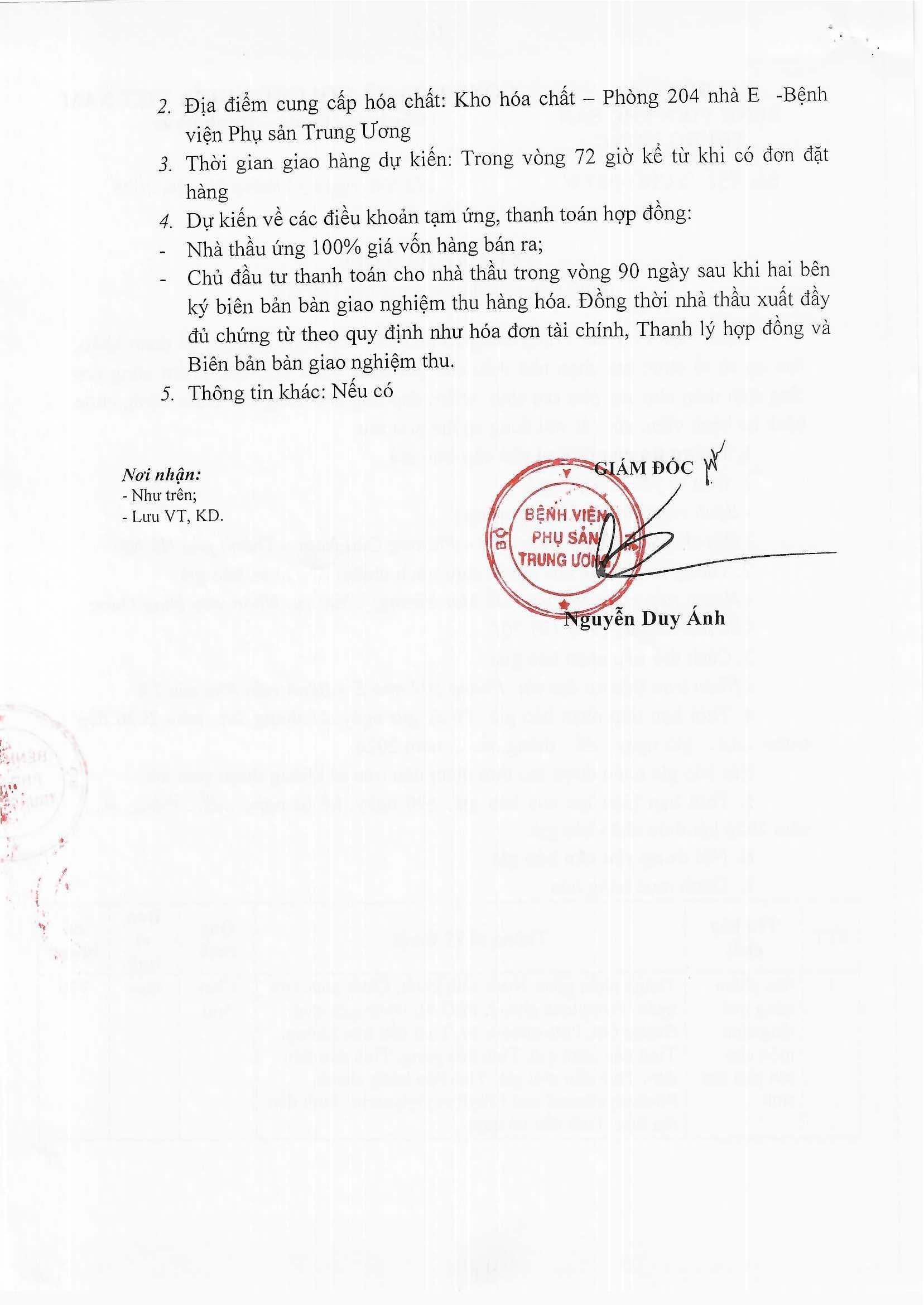 Kính gửi: Các đơn vị cung cấp hoá chất